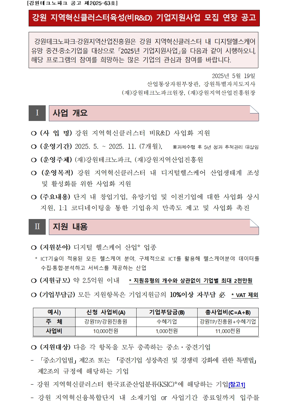 강원 지역혁신클러스터육성(비R&D) 기업지원사업 모집 공고(연장)