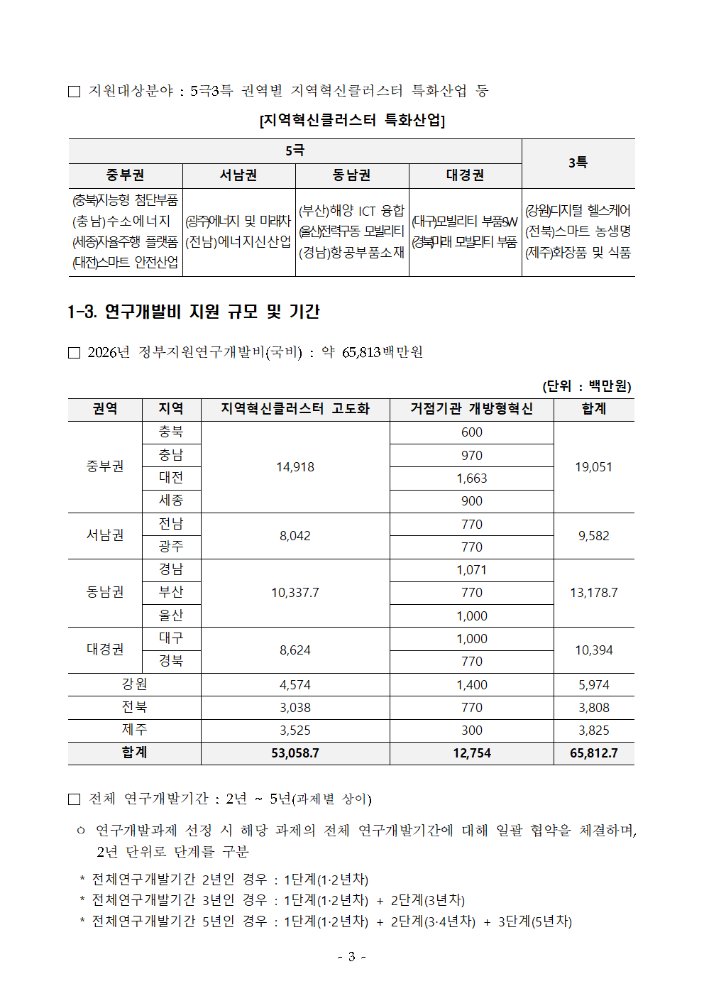 2026년도 지역혁신클러스터육성(R&D) 사업 시행계획 공고