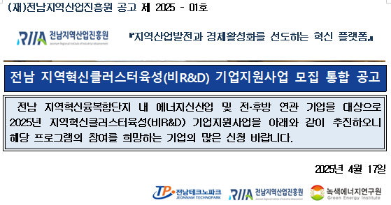 전남 지역혁신클러스터육성(비R&D) 기업지원사업 모집 통합 공고